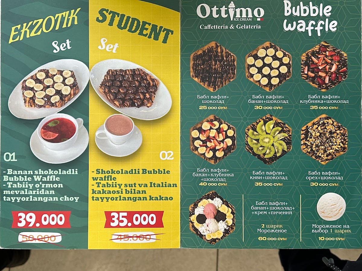 Welcome to Ottimo, a delightful café nestled on Katartal Street 60 in Tashkent, Uzbekistan. This charming spot is expertly crafted for coffee enthusiasts and food lovers alike. The menu features a variety of exquisite dishes that harmonize perfectly with their rich coffee selections, creating a wonderful dining experience.